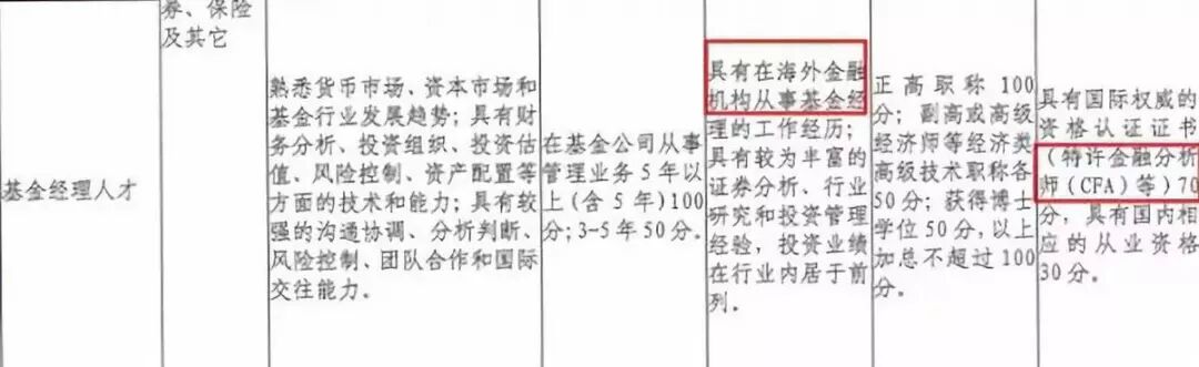 比如“基金经理人才”要求申请者具有在海外金融机构从事基金经理的工作经历,另外在证书要求方面,CFA则起到了决定性作用!