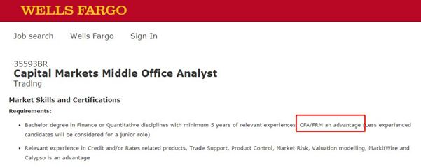很多金融公司在招聘时都偏爱CFA持证人。越来越多的机构在Job description中都会明确写出必须具备CFA证书,或CFA持证人优先。例如: