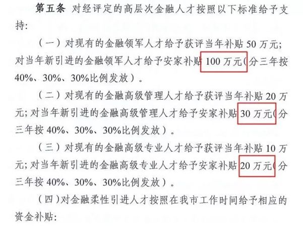 不仅如此,为了争取优秀的金融人才,国家还直接发钱了!