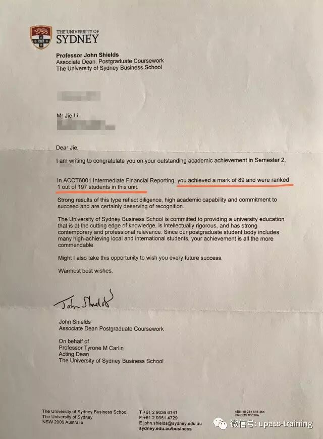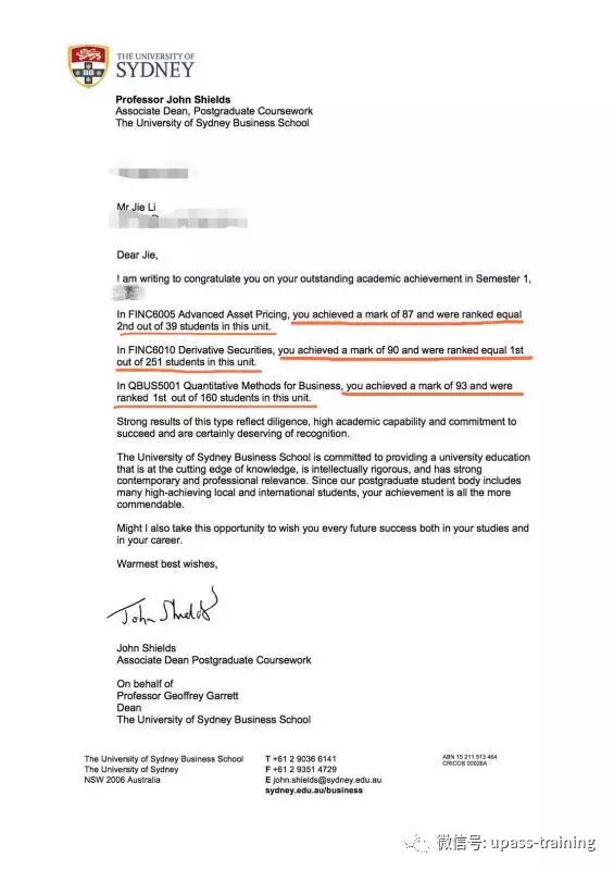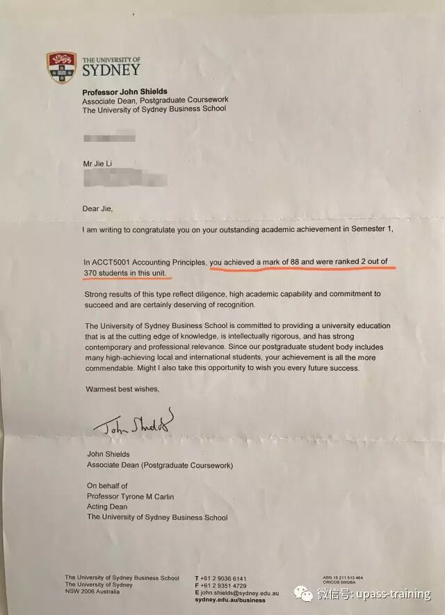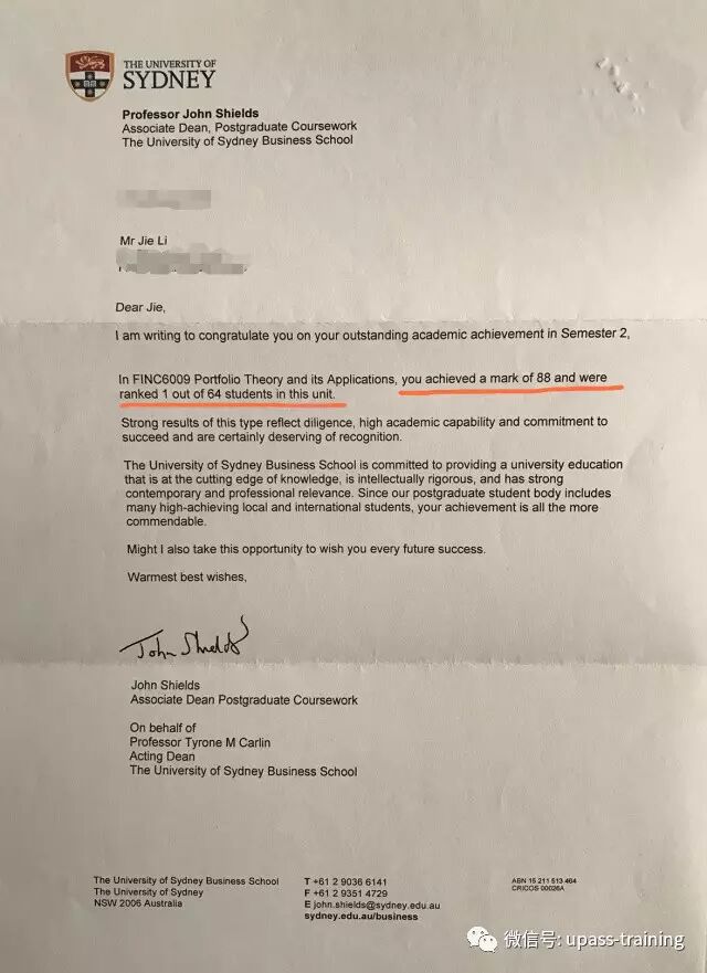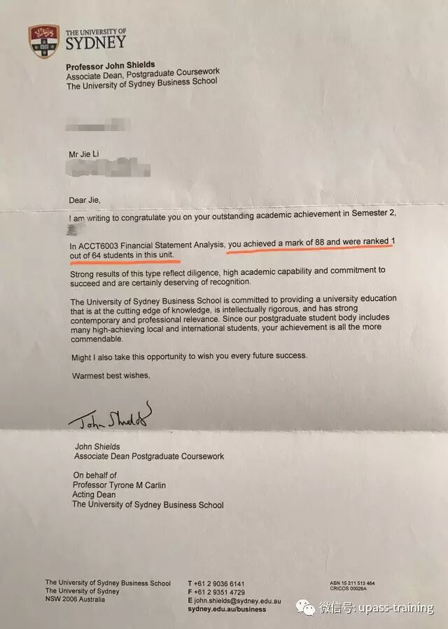 这是第一学期成绩太好年级主任给的表彰信(Dean’s letter)