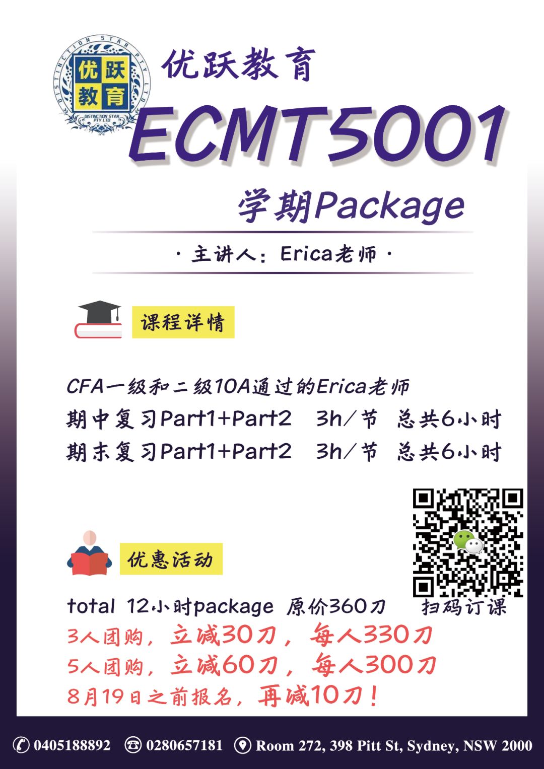 对于期末考试比重这么大的ecmt5001 老师我们隆重推出Erica 灵动的小精灵为大家分享经验,传授课程.
