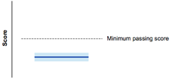 1、中间虚线代表最低通过线。而蓝色实线,代表考生的实际分数。所以如果实线位于Minimum Passing Score之上,就代表通过,越高代表考的越好。