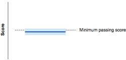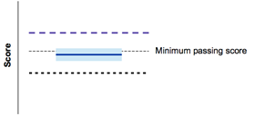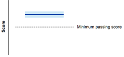 4、实线周围的淡蓝色区域,代表CFA协会给出的置信区间 (confidence interval)。协会认为,你可能由于发挥问题、睡眠质量、猜的水平、或者考场环境等,成绩会有偏差,所以计算了你同样水平下再考一次可能的分数。(可以说相当sweet了)