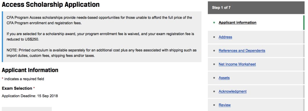 选择想要申请的奖学金(这里是Access Scholarship)。