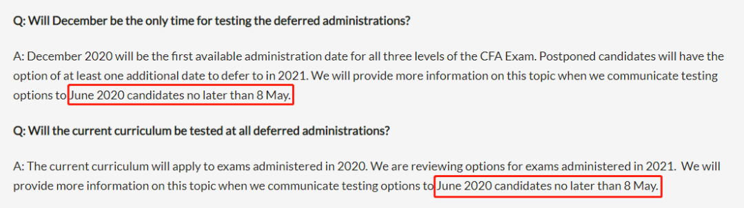 协会表示,最晚会在2020年5月8号通过邮件的方式,给各位考生沟通可选的延期考试时间。