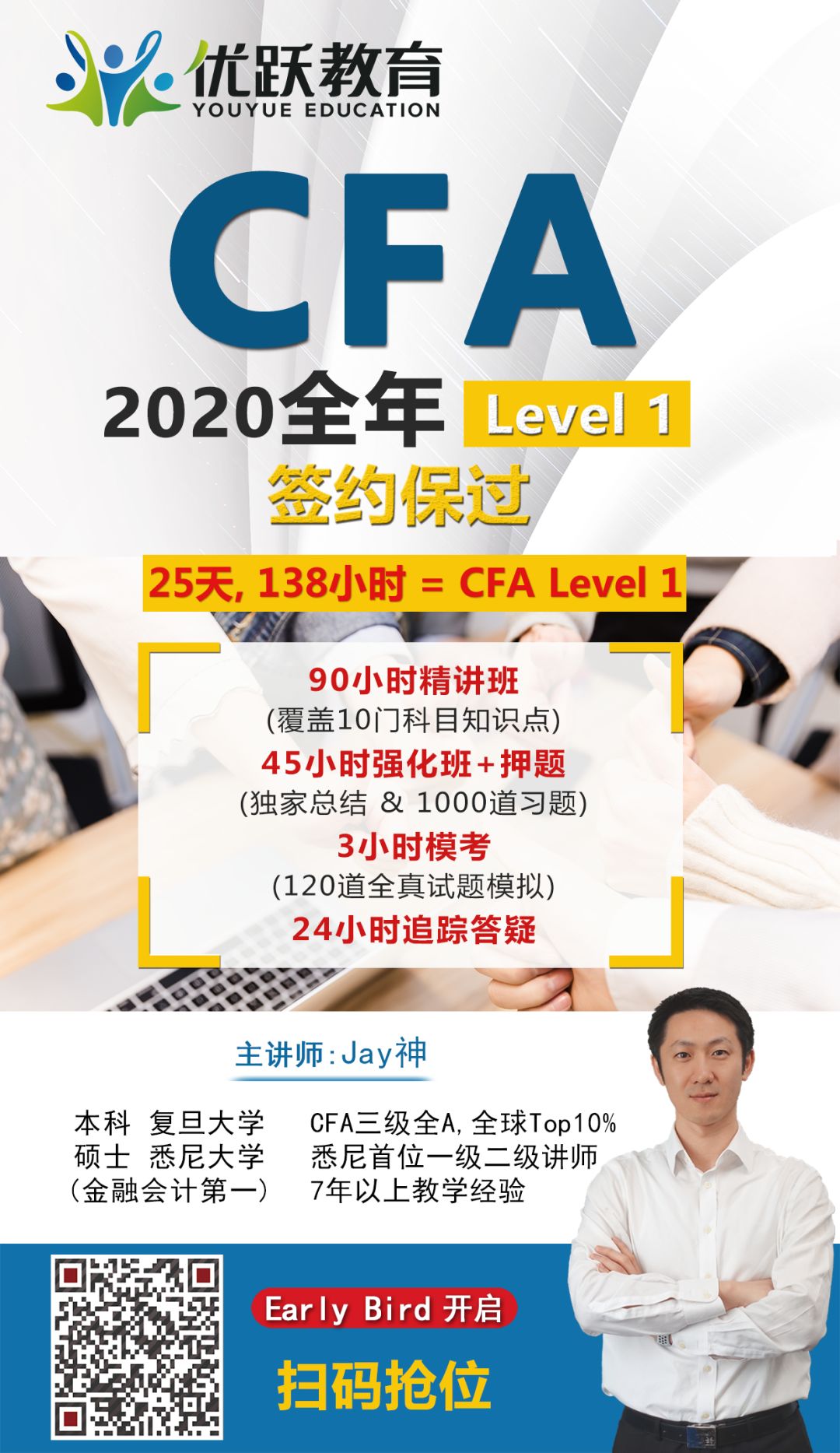 我们优跃教育为了学生更好的学习CFA ,不会耽误这一年时间,我们在最快时间做出最好的处理方案,大家可以自由选择一级上课时间、自由选择网络或者之后的实体。