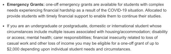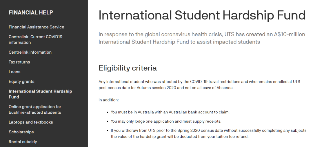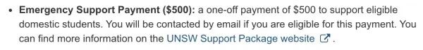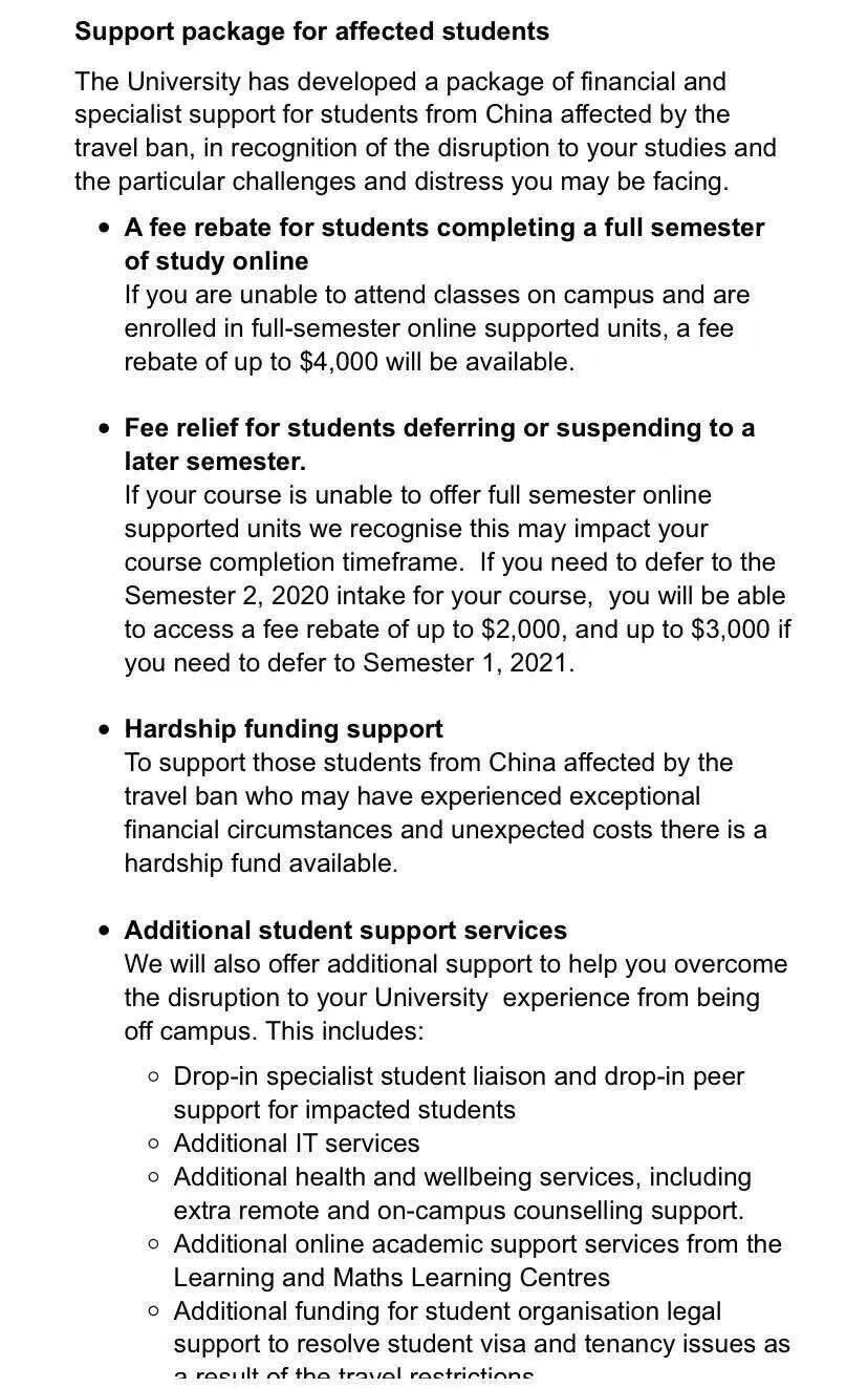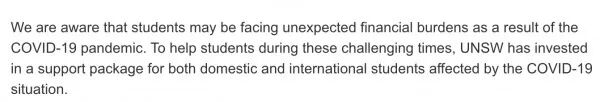 校方称,“因受新冠疫情的影响,我们意识到许多学生正在面临不可预期的经济负担。为了帮助学生应对这对困难时期,UNSW为受疫情影响的国内和国际学生创建了一个‘支持计划’。”