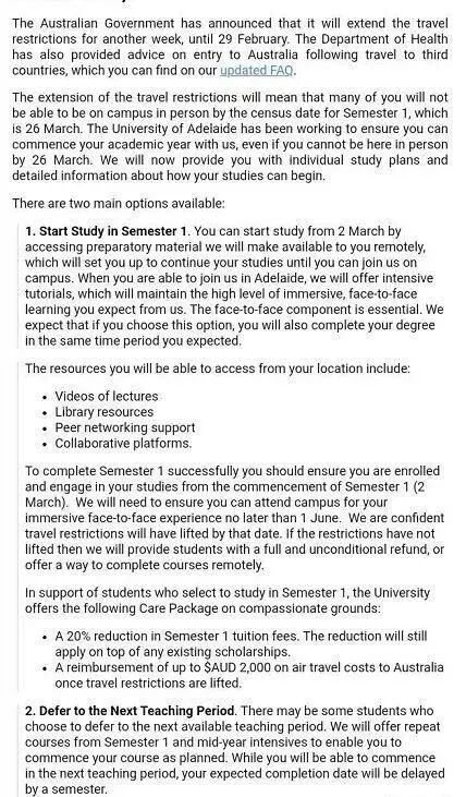 阿德莱德大学向学生发送的邮件中声称