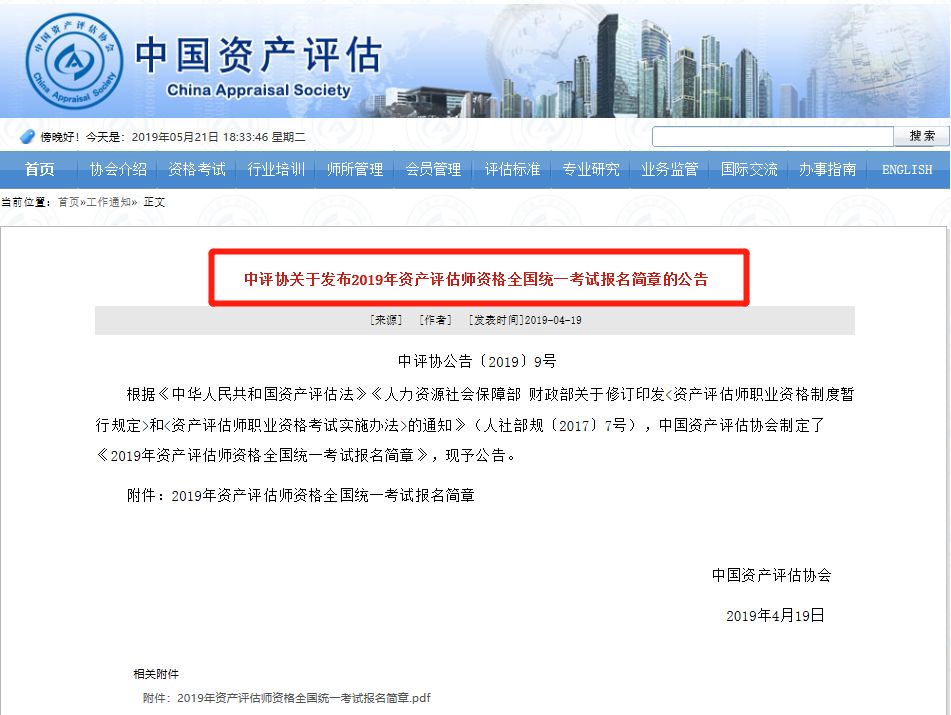 中国资产评估协会官网今年发布发布的《中评协关于发布2019年资产评估师资格全国统一考试报名简章的公告》中,惊现了一条免试信息:通过全国统一考试取得注册会计师证书,可免试《资产评估相关知识》科目。也就是说有了CPA以后再考资产评估师可以少考一个科目啦!